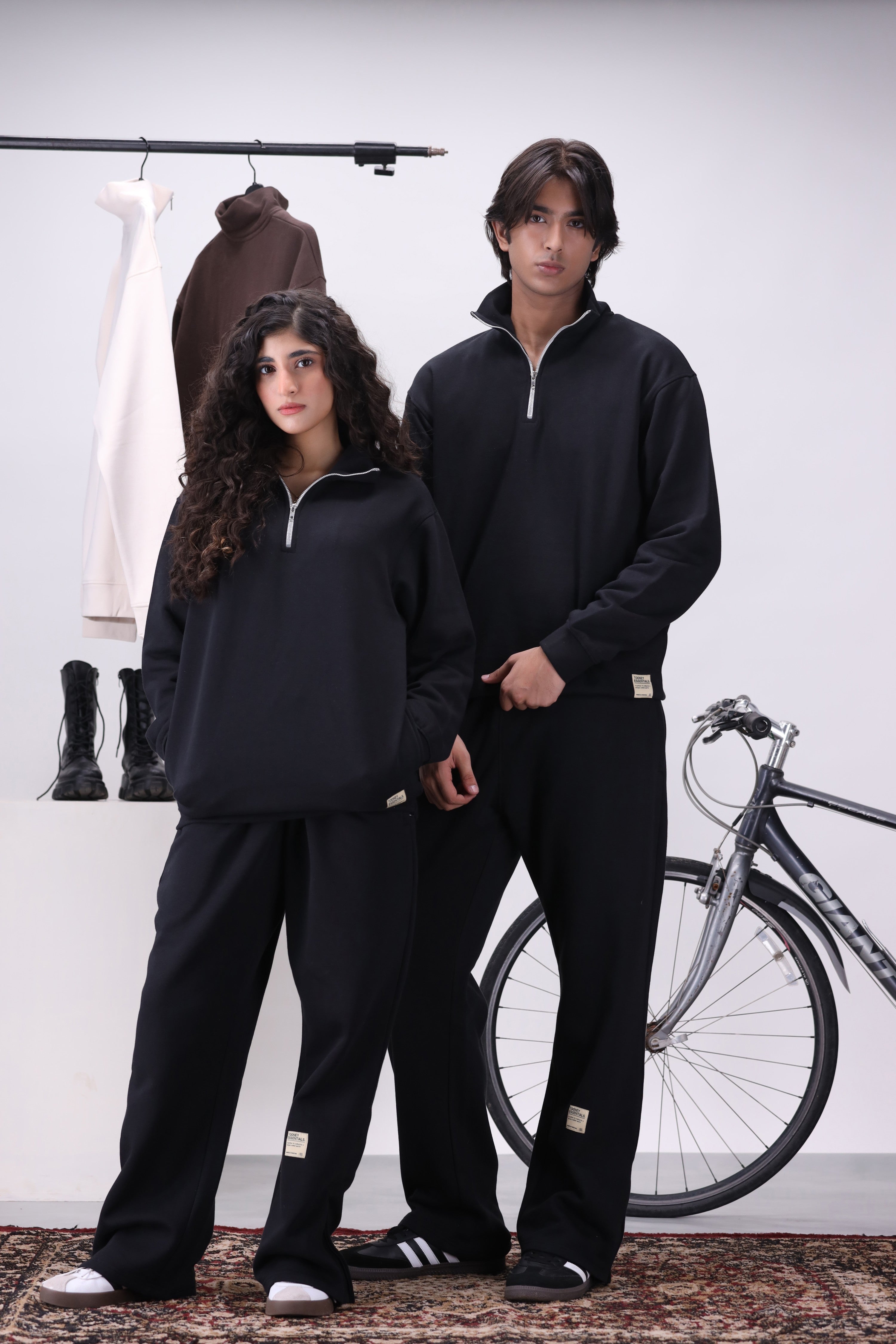 Introducing the Black Unisex Sweat Set, featuring a Relax Fit Fleece Sweatshirt and Matching Cuffed Relax Fit Trousers. Made with 80% cotton, 10% BCI cotton, and 10% polyester in 300gsm fleece, this set offers the perfect blend of comfort and style. Our male model is wearing a medium size and our female model is wearing a small size. Experience all-day comfort with a trendy twist, highlighted by our new Puff Printed Tooney logo on the hoodie. Elevate your loungewear game effortlessly with this must-have set.
