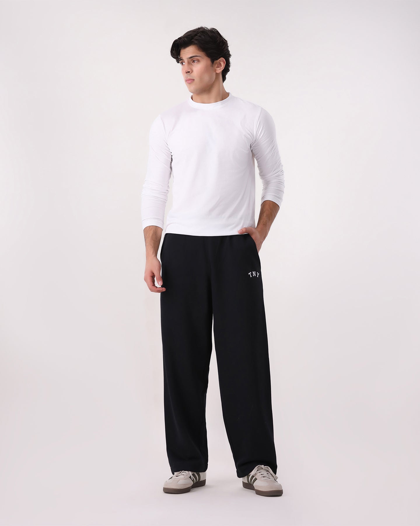 Introducing the Varsity Oversized Straight Leg Trousers. Made with soft fleeced lined fabric, these trousers are the epitome of comfort. With an oversized fit, adjustable high waist and complete with a printed TNY logo and front pockets with hidden zips feature, they make the perfect rest day fit.