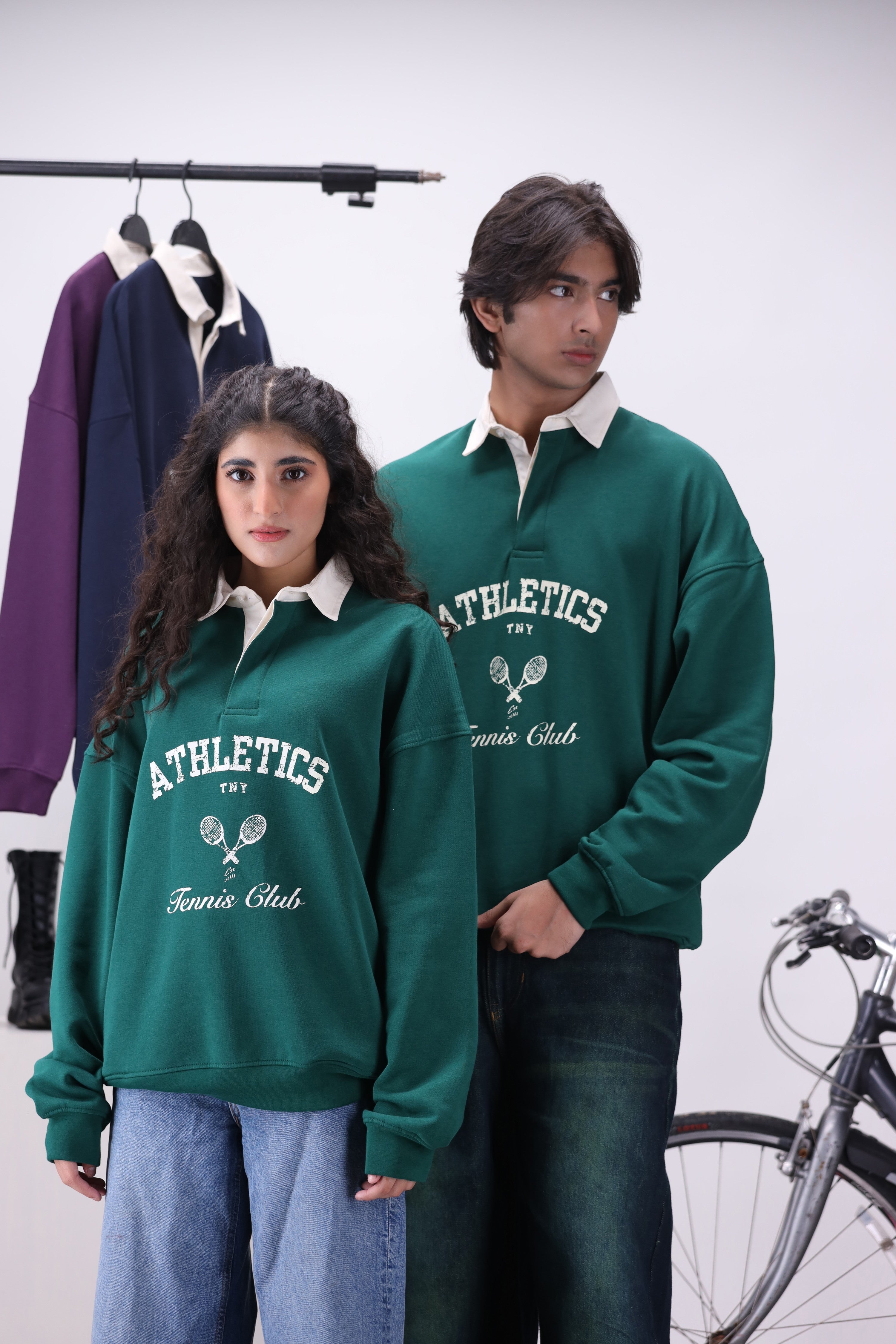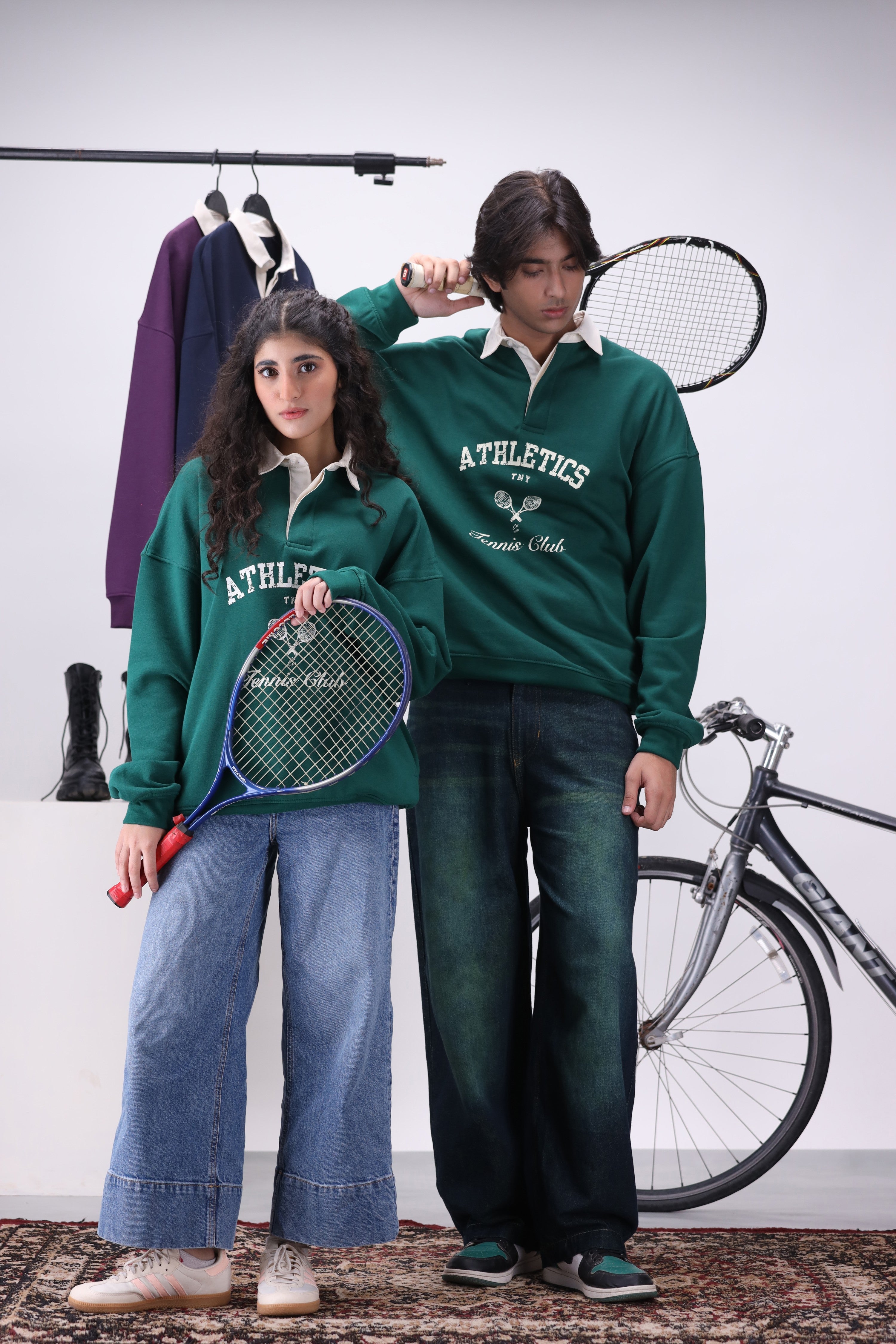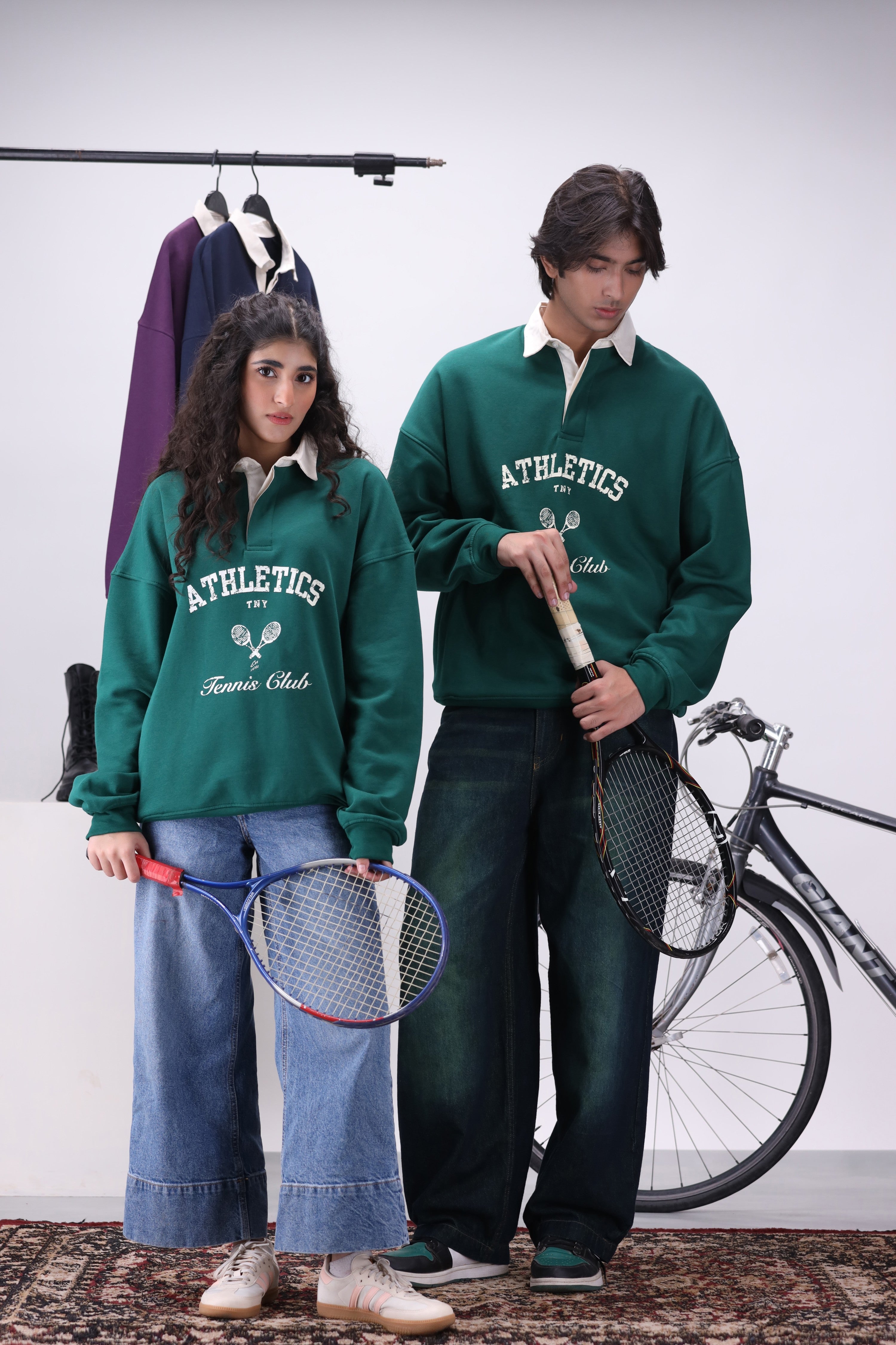 Crafted from 100% BCI cotton fleece (300GSM), this relaxed-fit sweatshirt brings vintage varsity energy with a modern edge. Featuring a contrast twill collar, collegiate “Athletics Tennis Club” graphic, and a plush fleece body, it’s designed for all-day comfort on and off the court.