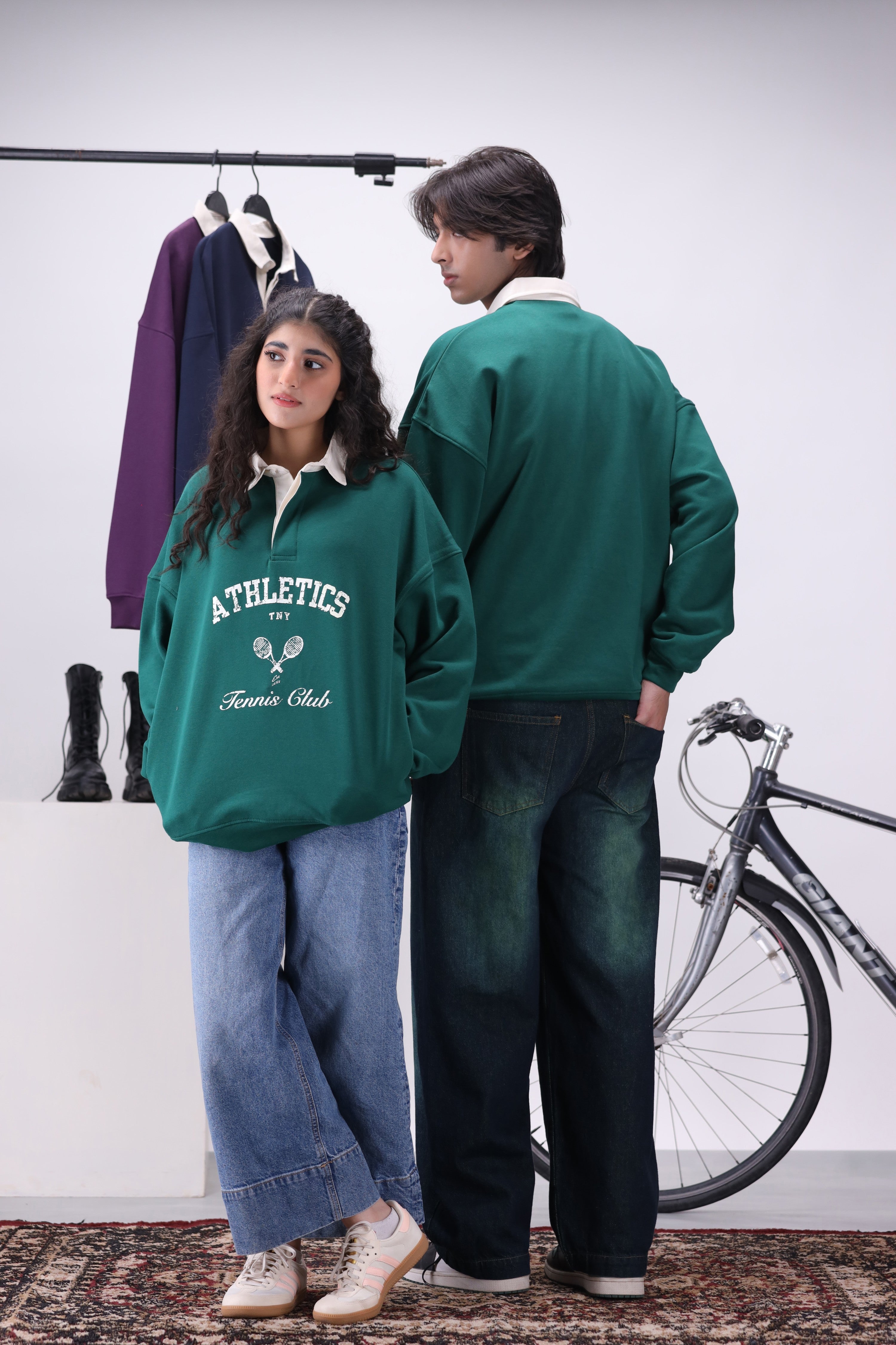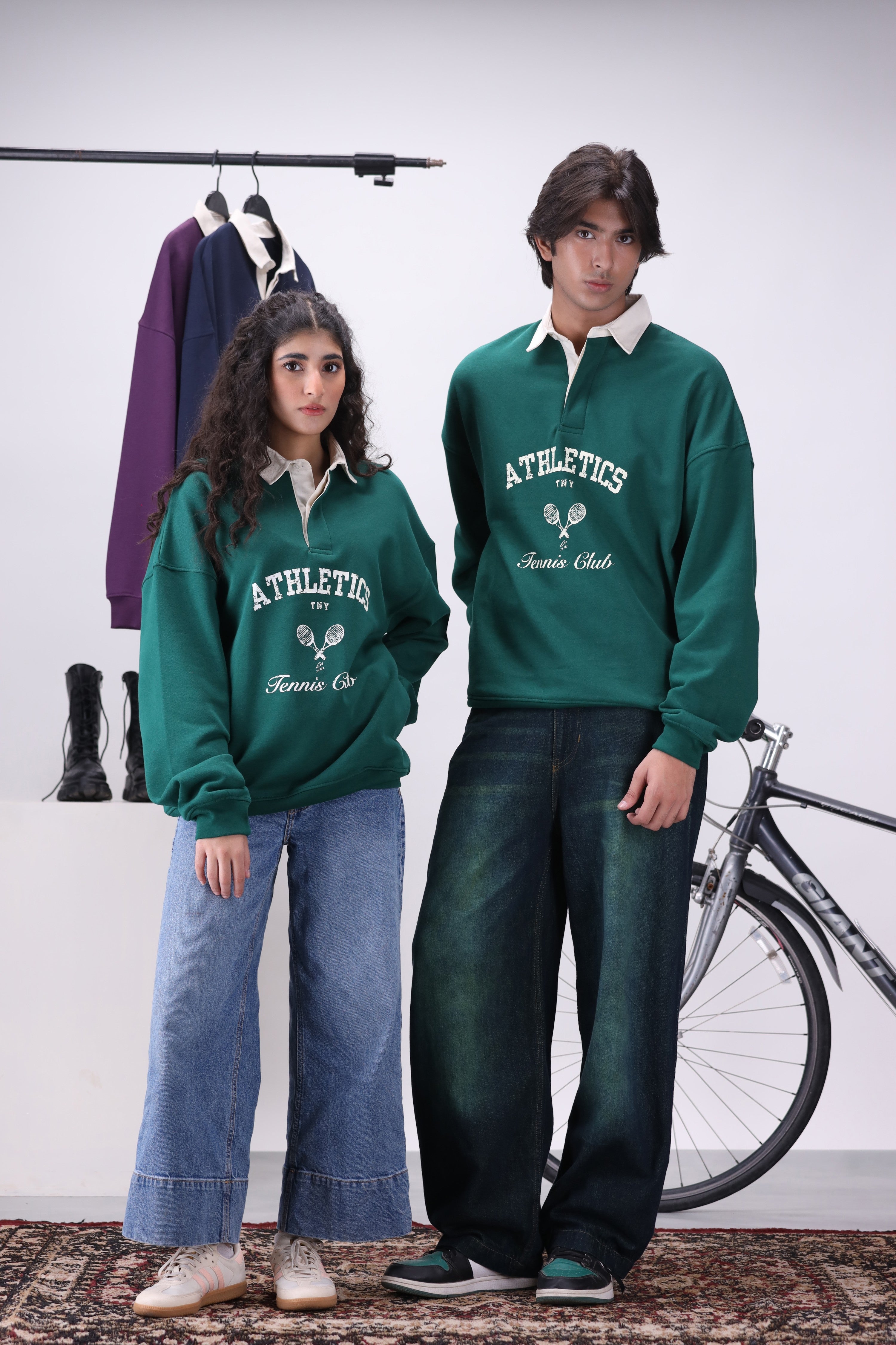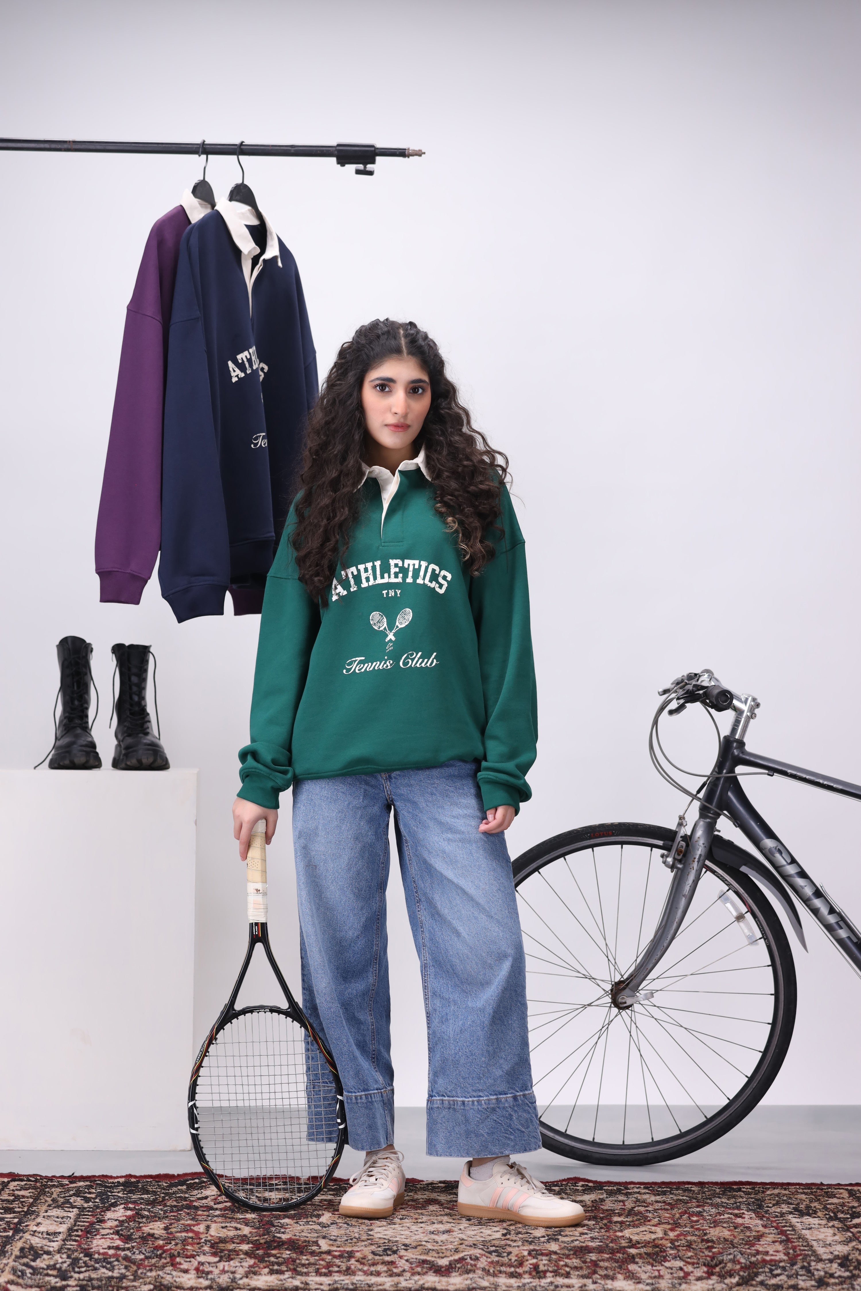 Crafted from 100% BCI cotton fleece (300GSM), this relaxed-fit sweatshirt brings vintage varsity energy with a modern edge. Featuring a contrast twill collar, collegiate “Athletics Tennis Club” graphic, and a plush fleece body, it’s designed for all-day comfort on and off the court.