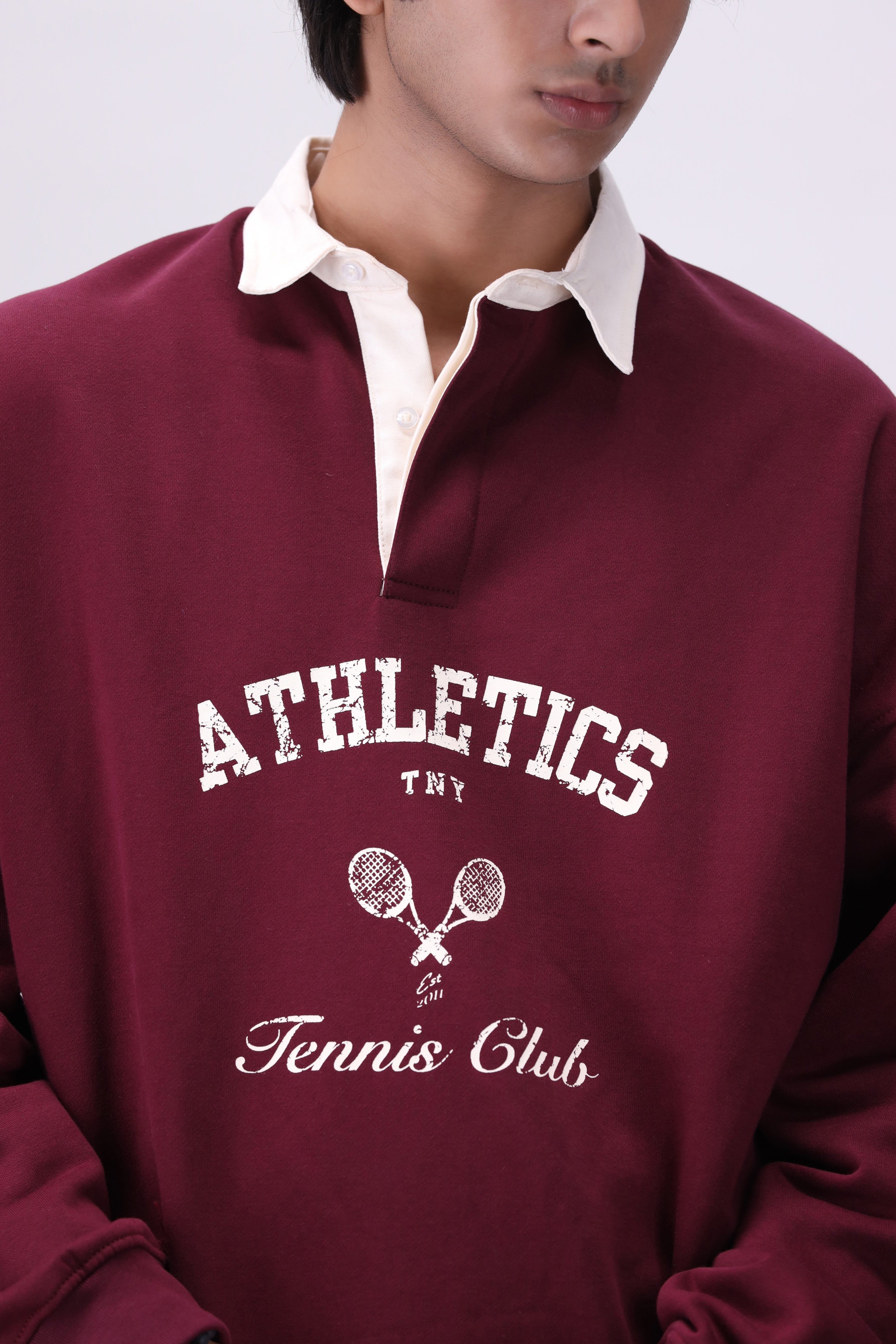 Crafted from 100% BCI cotton fleece (300GSM), this relaxed-fit sweatshirt brings vintage varsity energy with a modern edge. Featuring a contrast twill collar, collegiate “Athletics Tennis Club” graphic, and a plush fleece body, it’s designed for all-day comfort on and off the court.