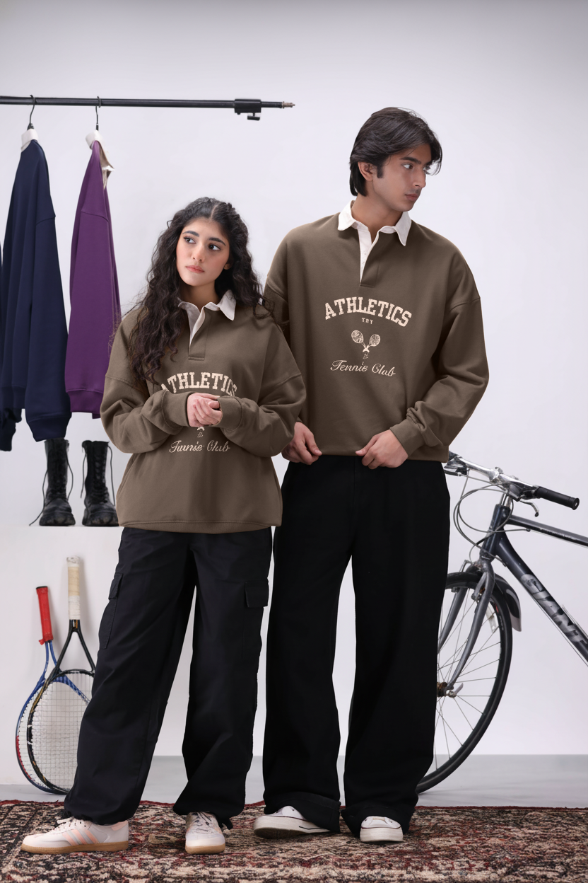 Crafted from 100% BCI cotton fleece (300GSM), this relaxed-fit sweatshirt brings vintage varsity energy with a modern edge. Featuring a contrast twill collar, collegiate “Athletics Tennis Club” graphic, and a plush fleece body, it’s designed for all-day comfort on and off the court.
