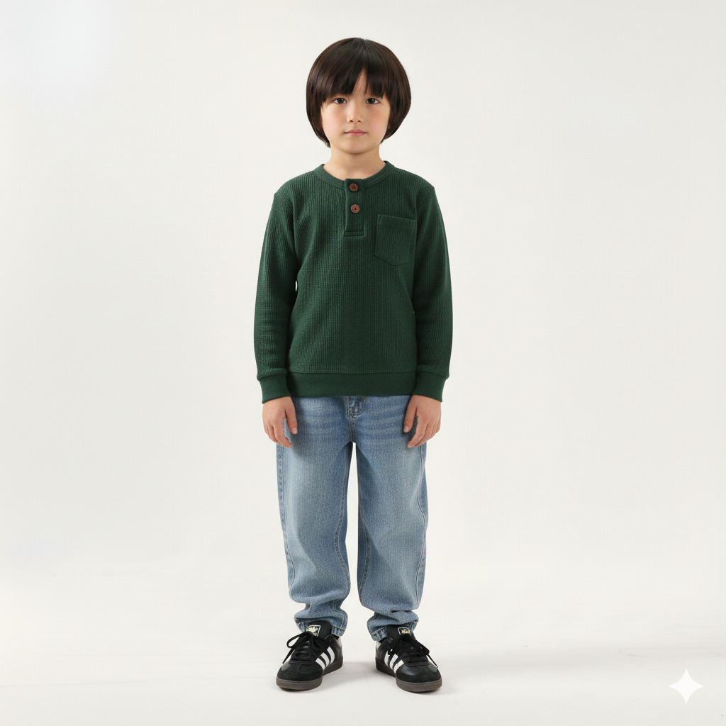 Our 100% cotton waffle knit thermal henley is crafted for perfection, featuring a classic two-button design for easy dressing. Perfect for keeping little ones warm and cozy on chilly days.