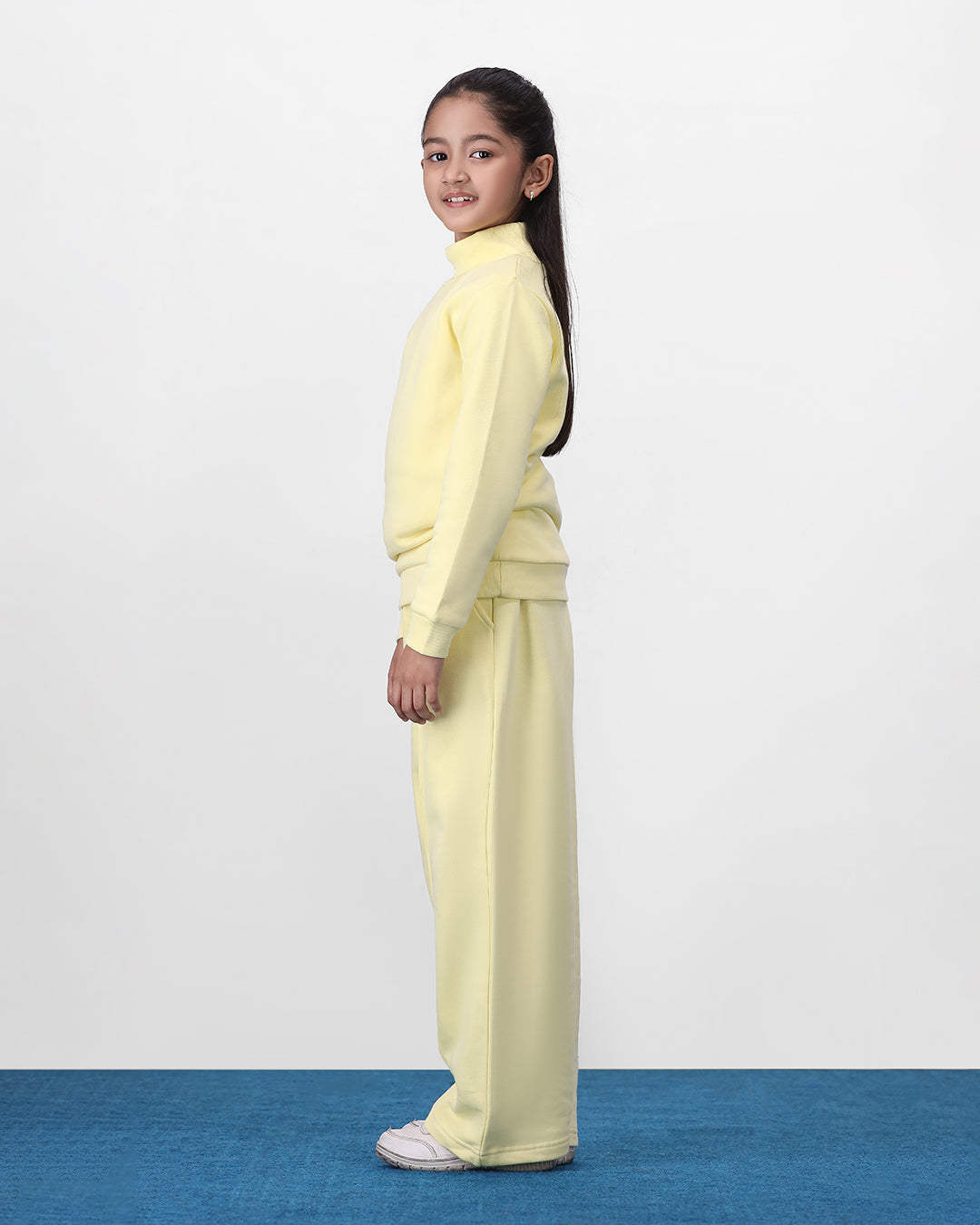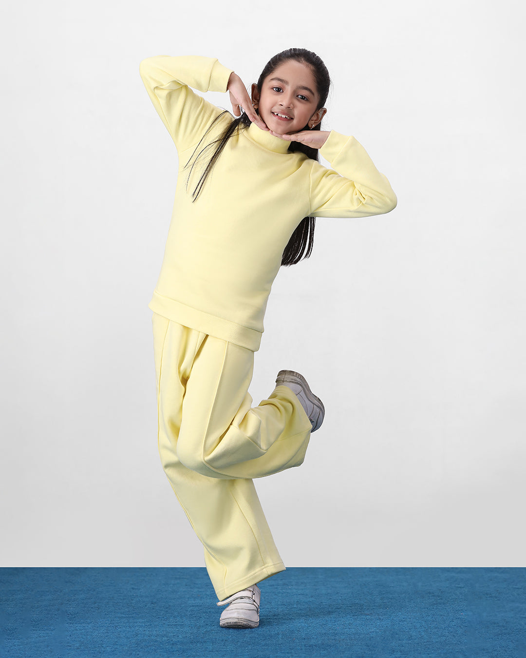 Snug, stylish, and super fun! 💕 This fleece set is made for girls who love to stay cozy and look cool. The hi-neck top with drop shoulders gives a relaxed, trendy vibe, while the pleated wide-leg trousers make twirling, jumping, and running around extra comfy.