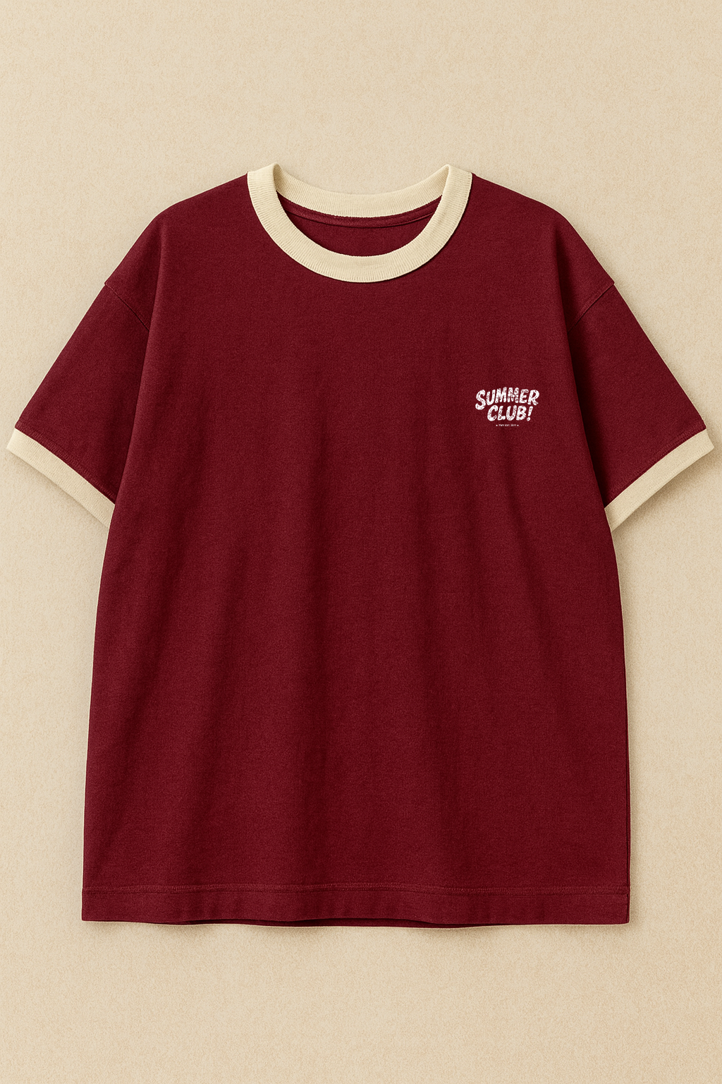 This 100% cotton ringer oversized tee features off-white ribbed detailing on the neck and sleeves, paired with bold Summer Club prints on both front and back. Soft, breathable, and built for sunny adventures.