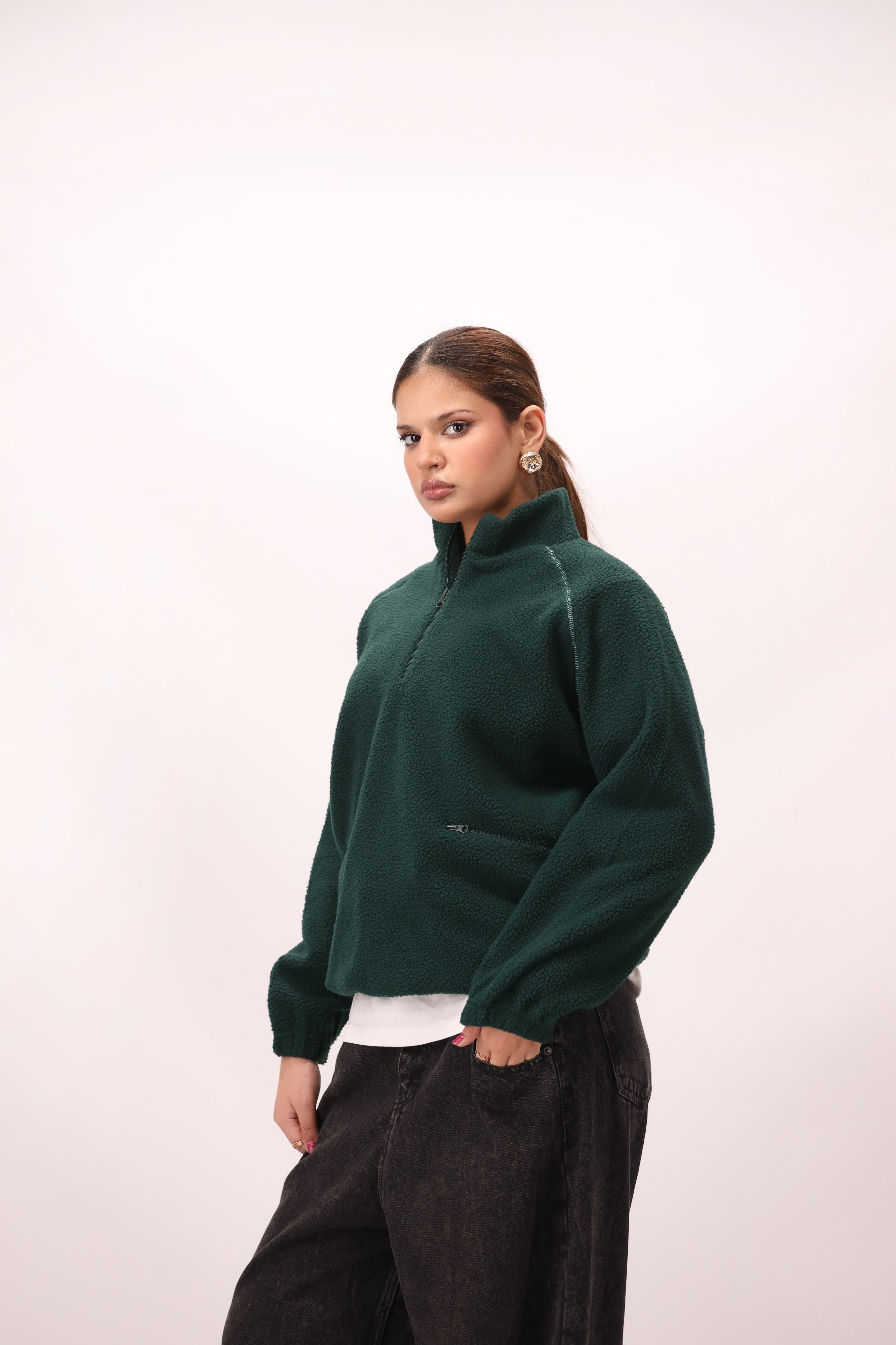 Sherpa Mock Neck ¼-Zip Unisex – Forest Green