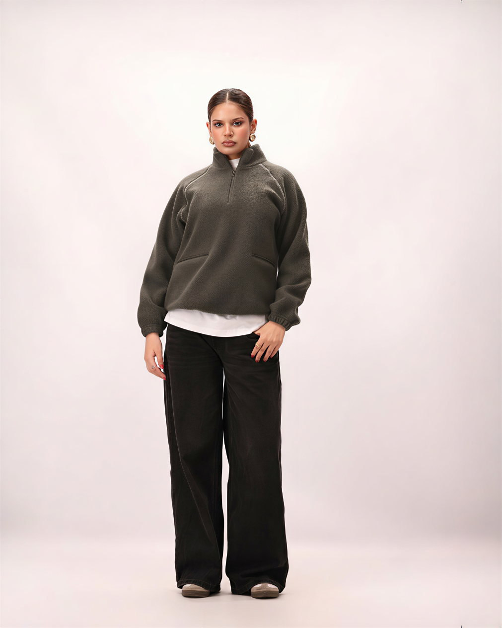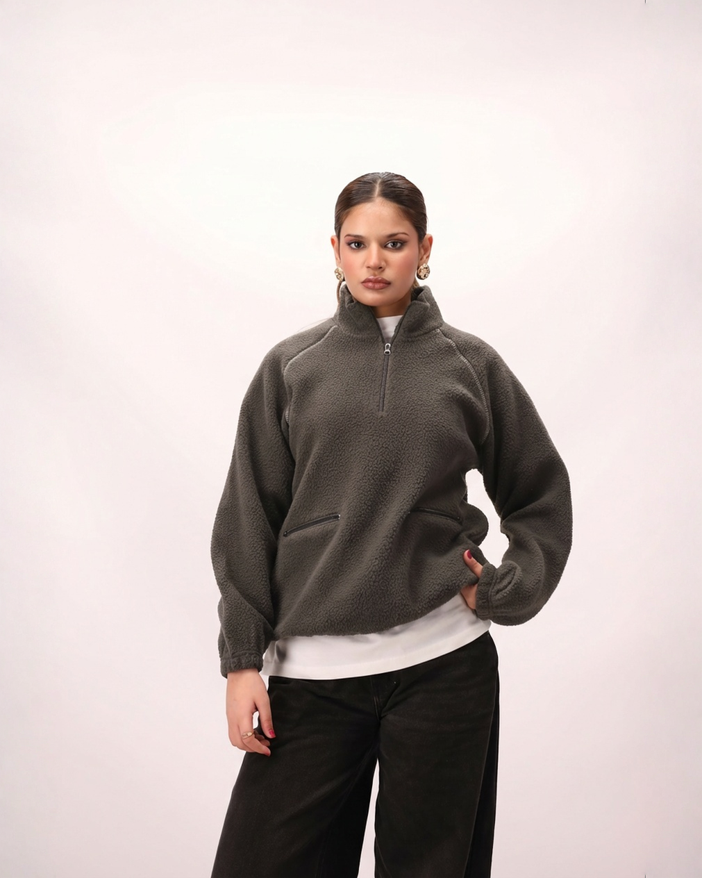 Sherpa Mock Neck ¼-Zip Unisex – Moss Grey