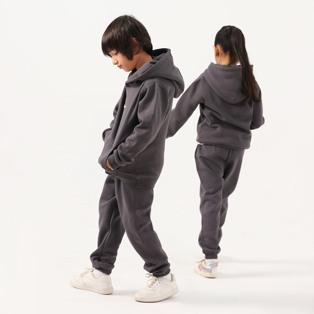The set features a puffed logo on the front, giving it a playful and stylish element. Crafted from 300gsm fleece, the hoodie and trousers are exceptionally soft and warm. The cuffed trousers offer a snug fit and flexibility, ideal for active play and relaxation.