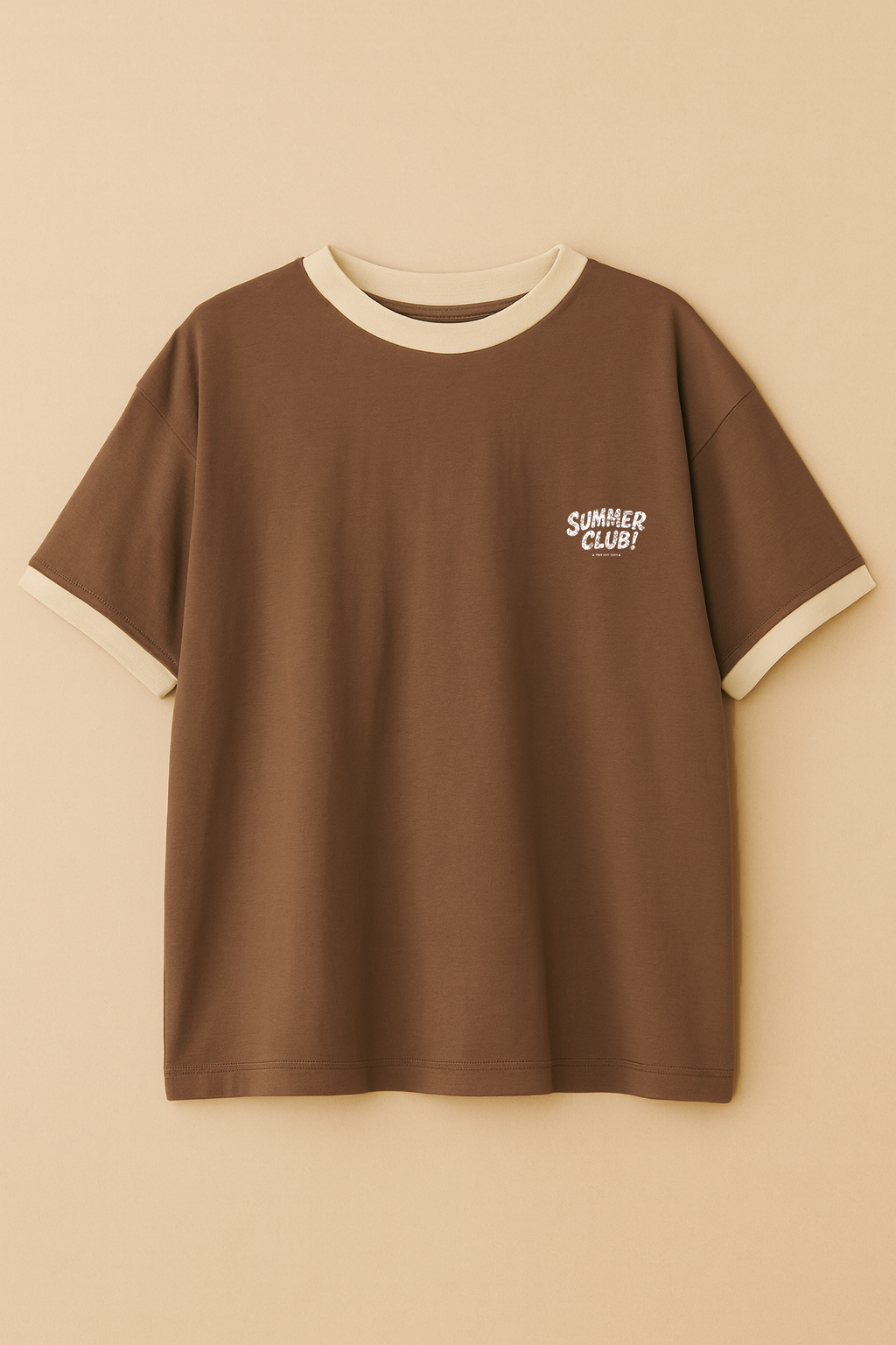 This 100% cotton ringer oversized tee features off-white ribbed detailing on the neck and sleeves, paired with bold Summer Club prints on both front and back. Soft, breathable, and built for sunny adventures.